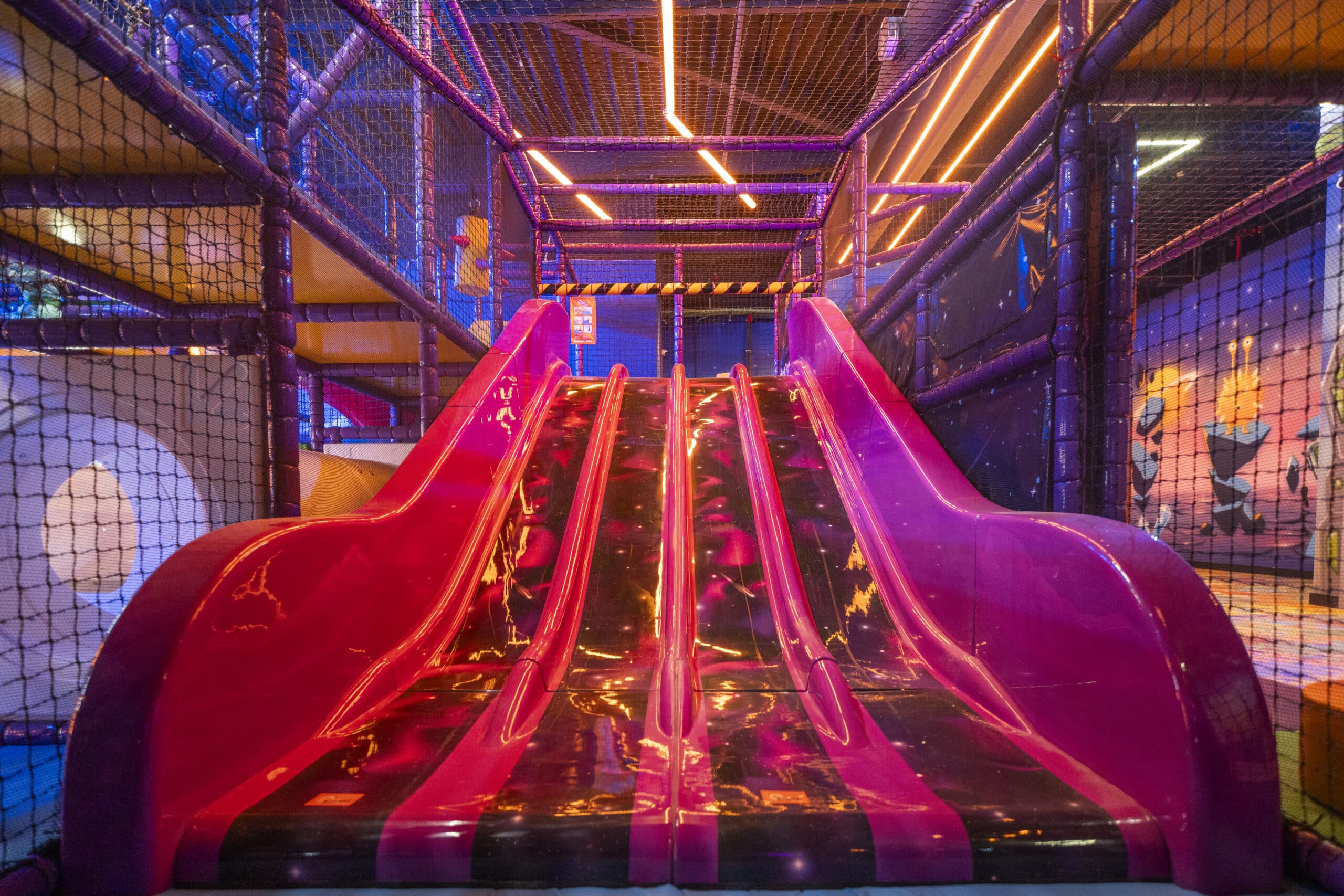 • Más de 500 m² con multiaventura de 2 pisos, lleno de toboganes, túneles y retos.