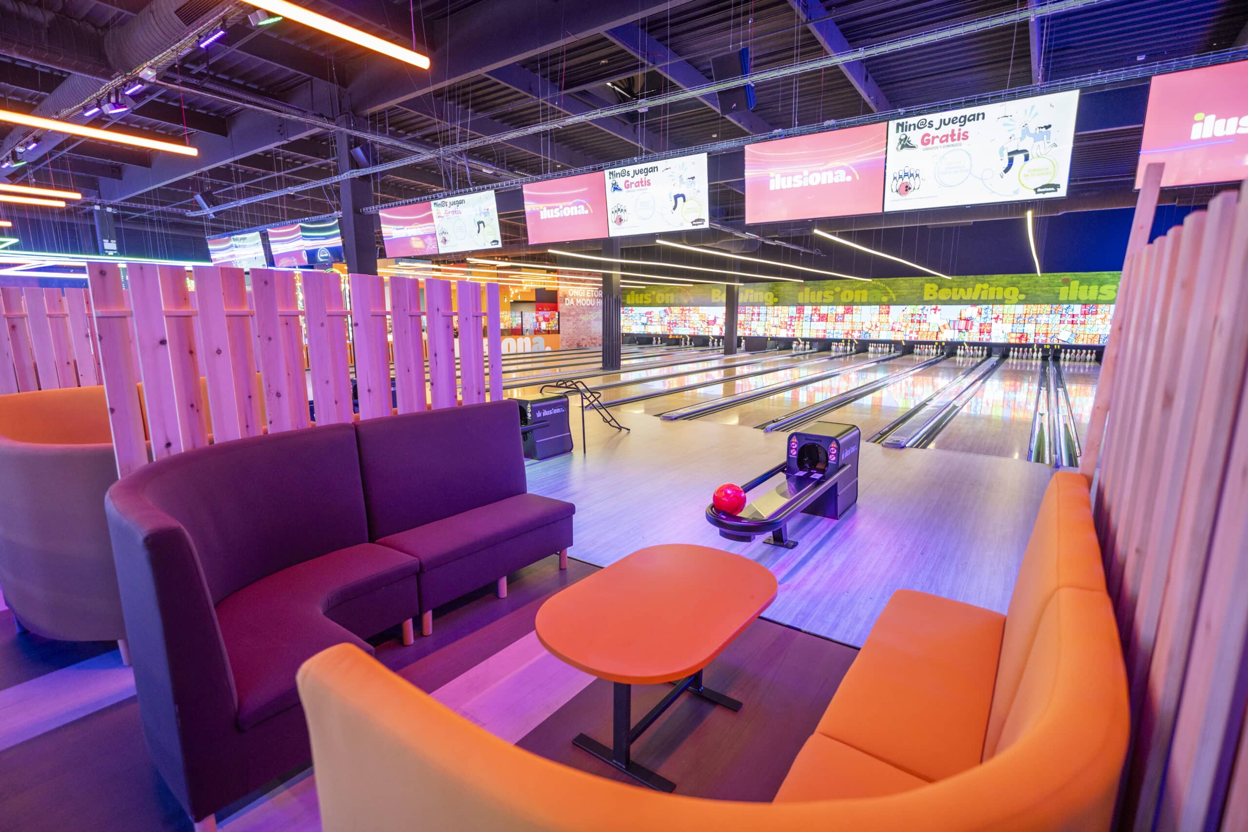 Explora la galería de imágenes de Ilusiona Urbil y descubre todo lo que te espera: nuestras modernas pistas de bolos en San Sebastián, los espacios temáticos para cumpleaños infantiles en San Sebastián, y la espectacular zona arcade en San Sebastián.